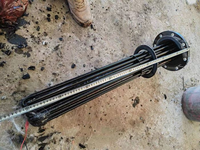 有客户问我,之前在别的地方买的导热油加热管为什么老是击穿?然后装上去用不了几个月就坏了,让我们给他分析下原因。然后我问他要了之前用的电加热管的相关参数以及坏的导热油加热管图片(如下图)。