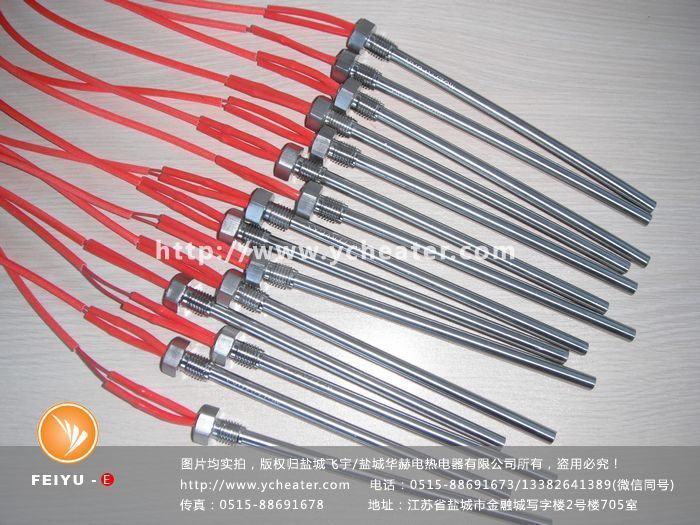点火棒是在单头直棒电加热管的基础上焊接六角螺纹形成的电加热管。比较常见的螺纹有直管螺纹和锥螺纹,这个可以根据客户使用环境来选择。