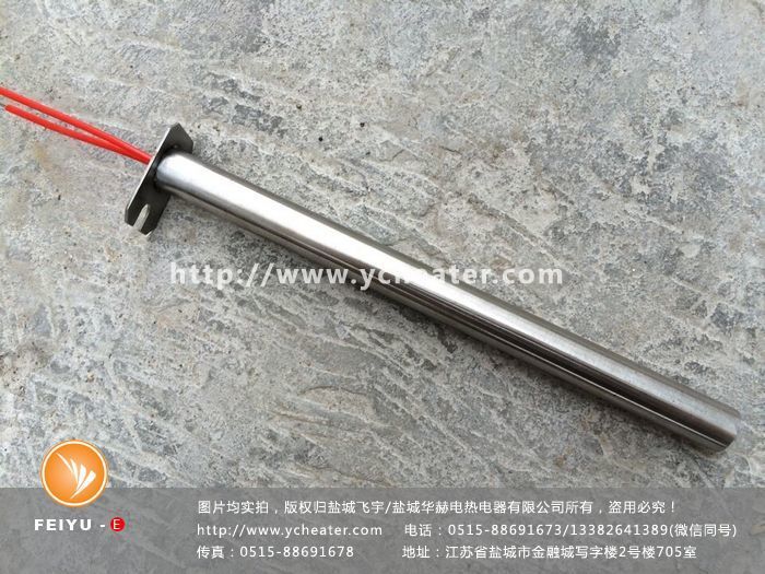 限位型单头电加热管是在单头直棒电加热管不同位置的上焊接各种形状的挡片来实现固定电加热管的目的电加热管。
