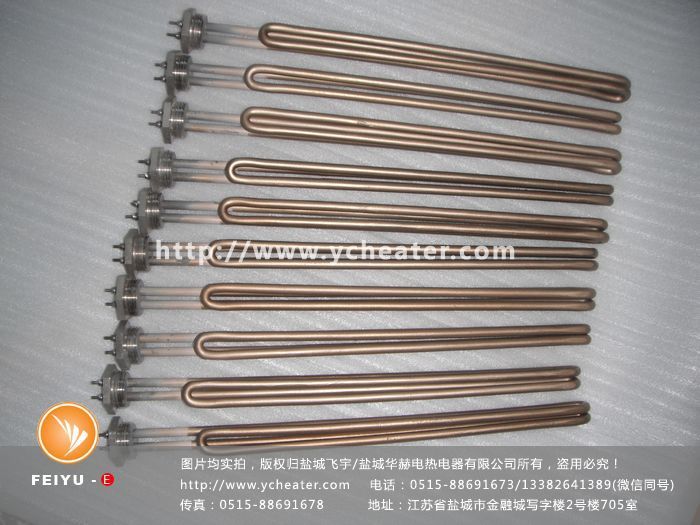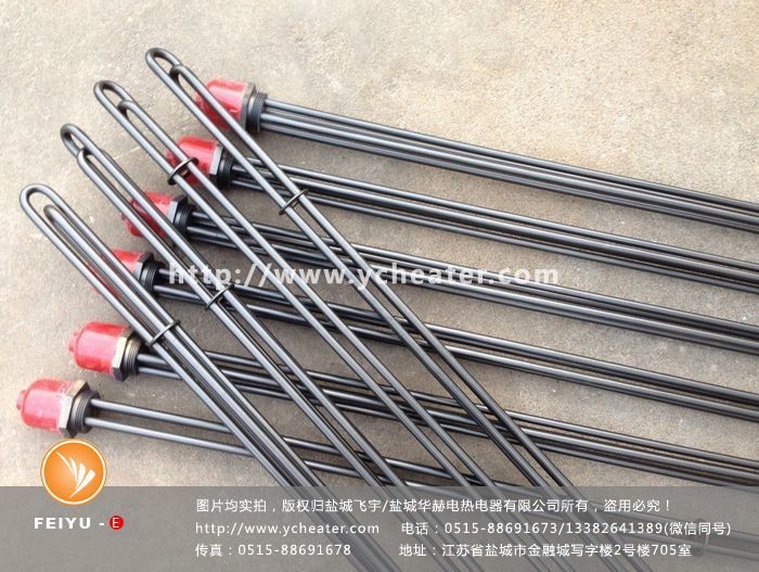 耐腐蚀丝扣电加热管是一种G螺纹丝扣加热管,通常由1、2、3个U型加热管通过TIG氩弧焊接在法兰上,然后再在电加热管表面喷涂防水垢涂层而做成。比较常见的耐腐蚀丝扣电加热管有1.5寸螺纹丝扣和2.0寸螺纹丝扣。当水质较硬、结垢严重时使用防垢涂层丝扣电加热管,能够有效保证其使用寿命。